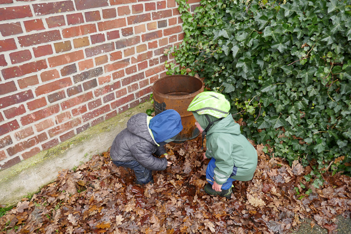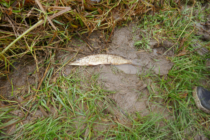 Der Graben ist frisch ausgehoben und ein Forsthausknirps entdeckt einen FISCH: