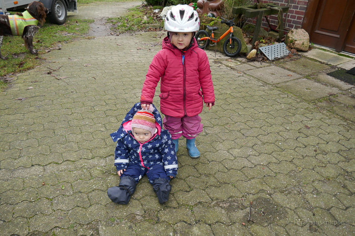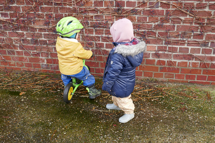 Einer vor der Pfütze steht und bei dem anderen sich das Rad doch weiterdreht: