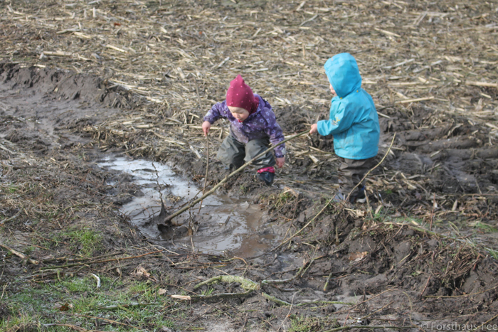 Mit Stöcken/Zweigen kann man den Knirpsen auch immer eine Freude machen: