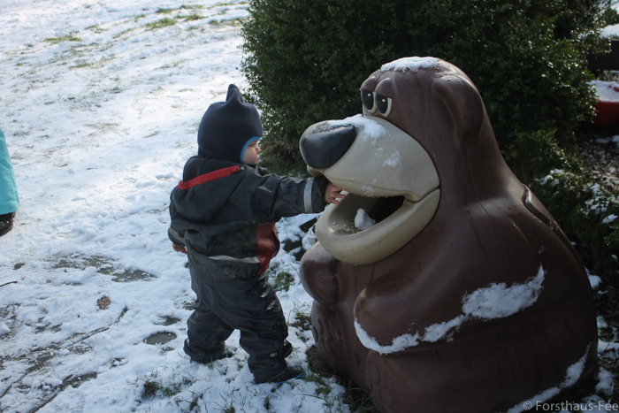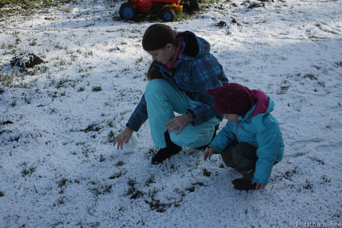 Heute morgen hat es geschneit und die Knirpse möchten einen Schneemann bauen – tjaaa