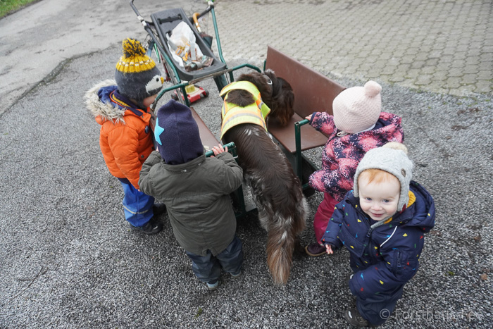 Schauen was der vierbeinige Forsthausknirps vor dem Zaun macht und