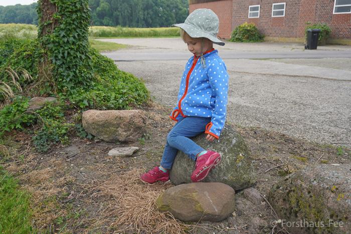 Ein bisschen mit dem Splitt spielen, bevor wir spazieren gehen