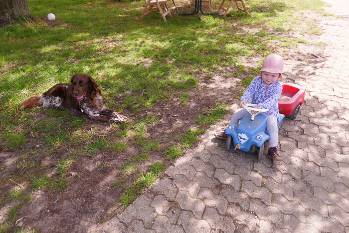 Eine Runde Bobby-Car und am Himmel ist der Hubschrauber ganz laut: