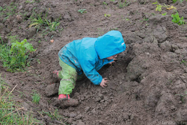 Hier ist das vorbereitete Pflanzloch, was Knirps absolut anziehend findet